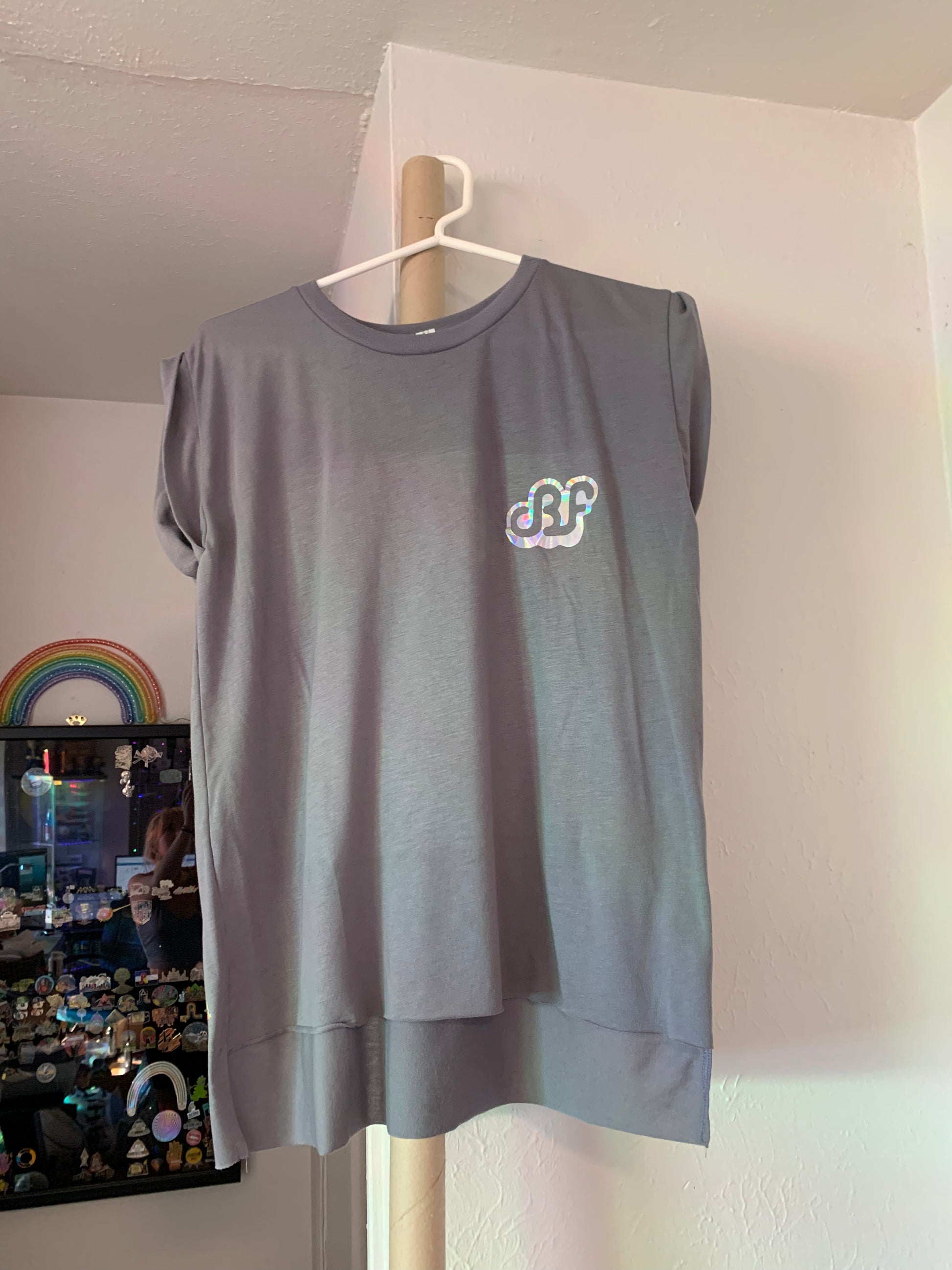Daily Bread Family-Silhouette-Medium Woman Storm Rolled Cuff Flowy Muscle TShirt